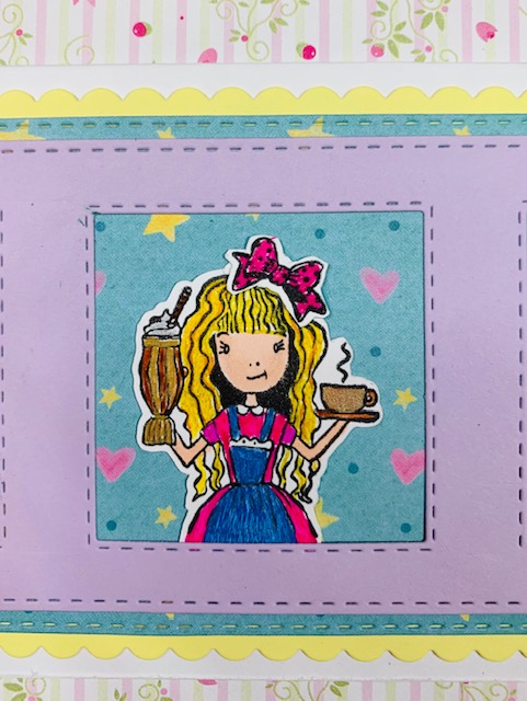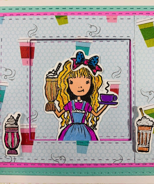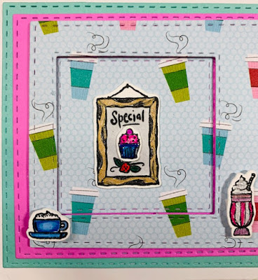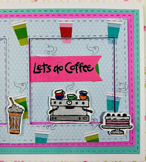 For the sentiment I heat embossed "Let's do Coffee" using Versafine Claire Nocturne Ink and Brutus Monroe Icicle (clear) embossing powder.